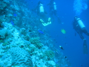 壁にはトサカやヤギ等のソフトコーラル(骨格を持たないサンゴ)が