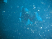 水温29度、透明度1本目2本目は25m。ここは15〜20m。 カンムリベラの幼魚、白に赤の模様。カクレクマノミ、クマノミ フタイロカエルウオ、細くて2色。ヒトスジギンポ、ハナミノカサゴ オトヒメエビ、ネッタイミノカサゴ、 コブヌメリ、オシャレカクレエビ