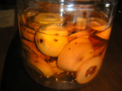 去年漬けたカリン酒。 そろそろ飲みやすいようにと、カリンを取り出し瓶も入れ替えました。 そして、去年漬けた梅酒。 4kgあります。うふふ・・・思わず笑ってしまいます。 色んな種類があるので、一緒に出来ず、、、梅とお酒を分けたら 8個の瓶になってしまい、どこにしまっていいやら、しばし・おろおろ・・・ 未だ、収納先なし。。(>;<)
