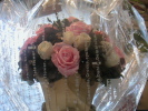 神戸にお住まいのけいさんに、作ってもらいました。 生のお花で出来ています。加工されているので 何年かは、水もやらなくても、日持ちするというすぐれもの☆ けいさんのは、センスがよくっ て豪華で こんなにいっぱいピンクのバラが入っています。