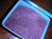 梅酢に漬けたしその葉を、4日日光浴して、スピードカッターにかけると この通り、、鮮やかに出来上がりました。 てんぷら料理の時、ご飯にふりかけると・・・美味い!のです。 プレは食欲も衰えることなく元気、元気。。。