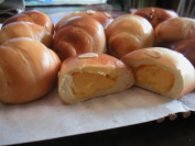 カスタードクリームをたっぷり入れて焼き上げました。 カットして・・・・・・この通り☆! 初級コースで登場するパンです。