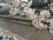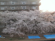 日曜日の朝6時半頃。 もう花見の場所取りのブルーシートがありました。 9分咲きくらいでしょうか?今年は、ほんとに綺麗。。。