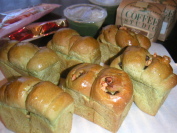 グリーキングを入れると抹茶のよう感じに焼き上がりました。 ミニの山食??とってもかわいいサイズ。 右のは、色んなチーズが入っています。 一人暮らしの朝食・・・もちろん・・暖めるだけ。