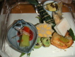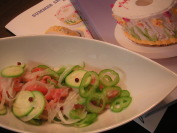 畑から獲れたてのお野菜をいただきました。 ぴーまん、ズッキーニ、とまと、なすび。。 肥料を味をみて栽培するという懲りよう☆ ズッキーニも生で美味しい*~~* サーモンがあったので@@マリネにしていただきました。