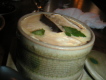 かぼちゃがホタテの貝のお皿にのっかって。 中身はエビ、ホタテで、かぼちゃの皮も外側で緑色なんですが! まったけの茶碗蒸し、とろ。